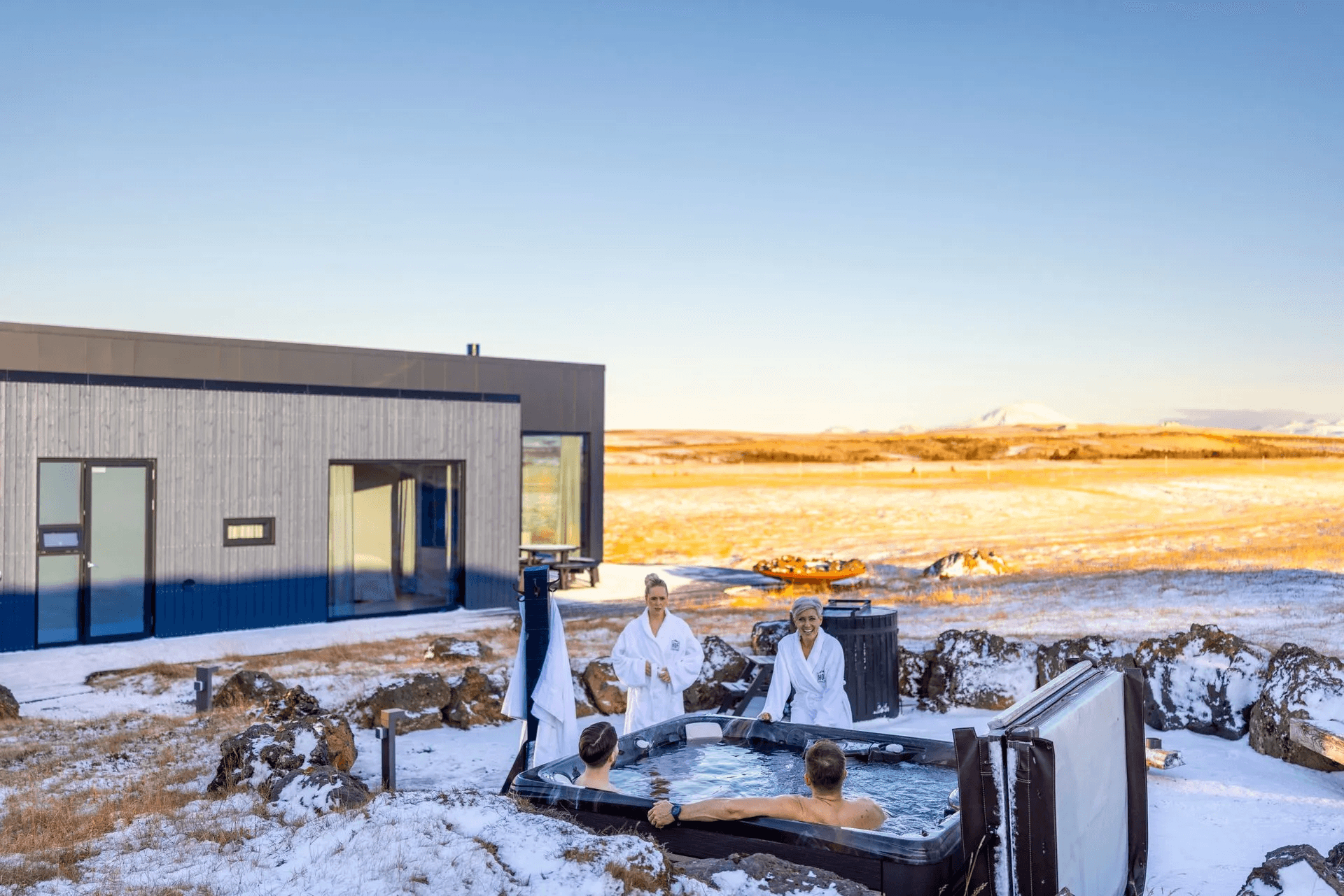 Our exclusive villa on Iceland’s stunning south coast offers a luxurious base to explore the region’s natural beauty. Designed with elegance and comfort in mind, the 200-square-meter villa features two spacious bedrooms with en-suite bathrooms, private hot tub, sauna, and cold plunge access.